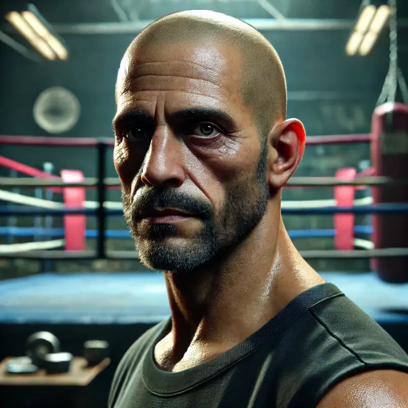 Aquí tenemos a Pedro, el dueño del gimnasio y entrenador de Mara. Es quien le transmitirá todo su conocimiento y las técnicas esenciales del boxeo.